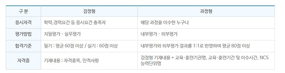 - 교육훈련을 받은 모든 능력단위가 기재된 과정평가형 자격증 발급