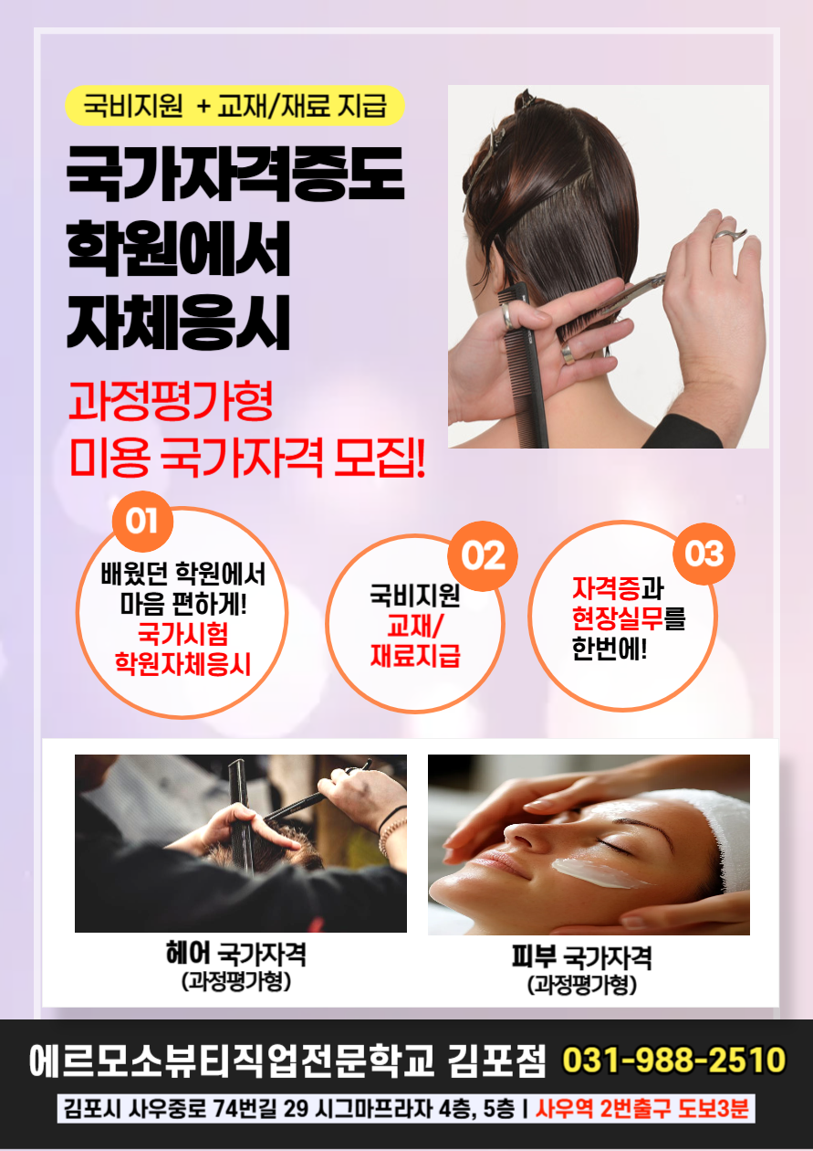 학원자체시험으로 국가자격증 취득이 가능한 김포에서 유일한 에르모소뷰티직업전문학교